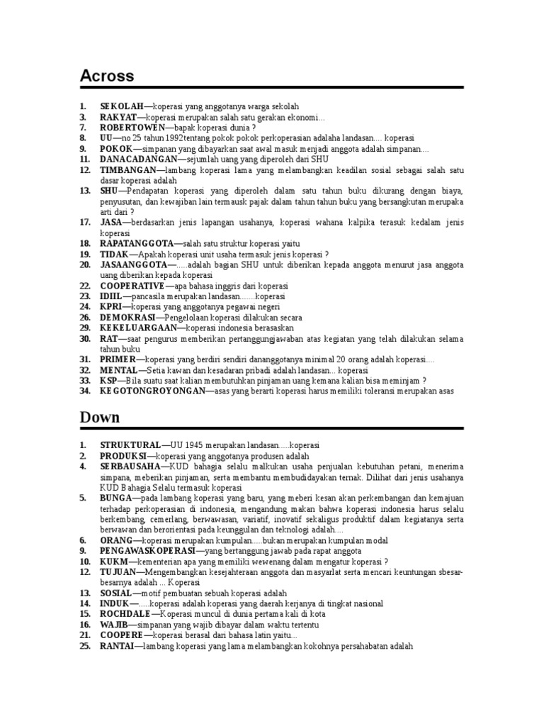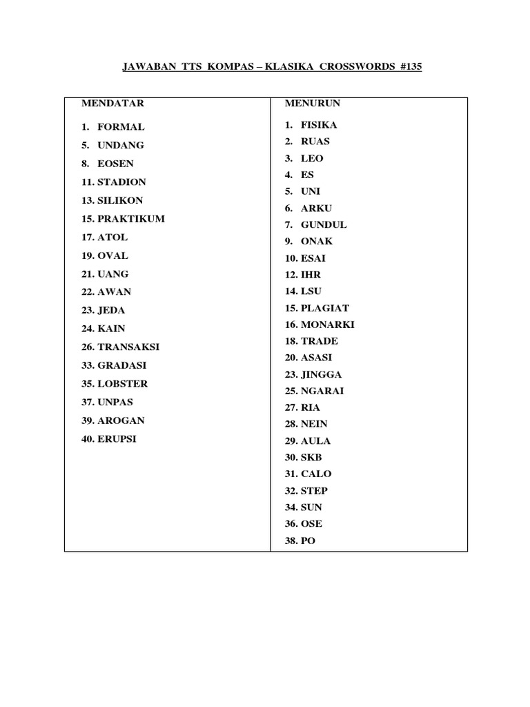 Kami mengumpulkan soal dan jawaban dari tts (teka teki silang) populer yang biasa muncul di koran kompas, jawa pos, koran tempo, dll.